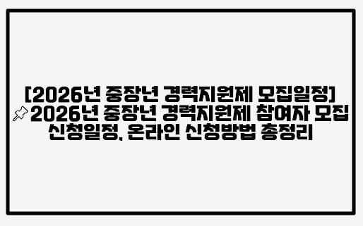 [2026년 중장년 경력지원제 모집일정]📌2026년 중장년 경력지원제 참여자 모집 신청일정, 온라인 신청방법 총정리 (+중장년 경력지원제 참여수당, 중장년 경력지원제 참여기간 및 수당)