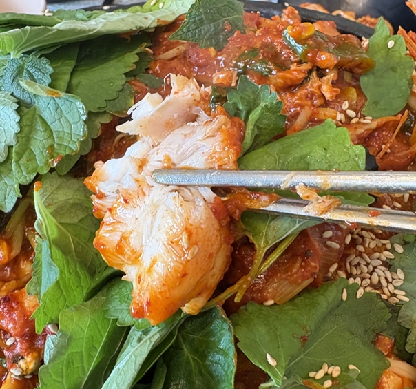 특히 아귀살이 메인이니만큼 집어들고 먹어보았는데 아귀살이 엄청 큼지막하게 들어있습니다. 😊