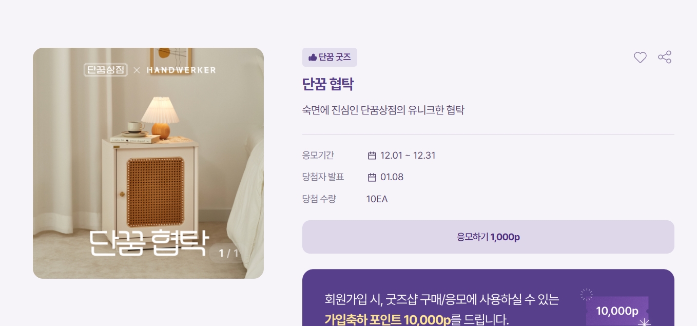 단꿈상점 안에서는 숙면에 도움되는 굿즈들이 있는데 구매는 불가하고 이렇게 응모로 만나볼 수 있어요.