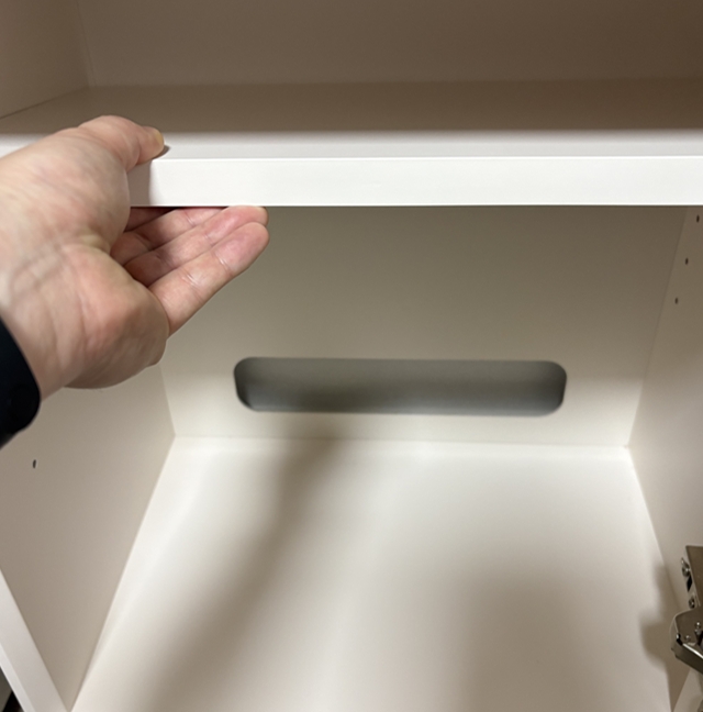 안방에 굴러다니는 멀티탭이 보기싫어 이곳으로 넣었고, 판자가 하나 같이오는데 아래처럼 판자 높이를 조절해서 물건을 수납할 수 있게끔 해놓았어요.