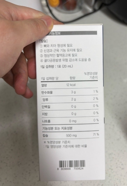 액상 제형 칼슘 보충제로, 하루 한포로 보충가능한 마이크로캡슐화 칼슘 제품 (+사진)