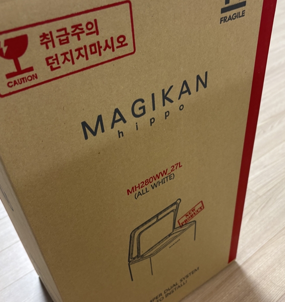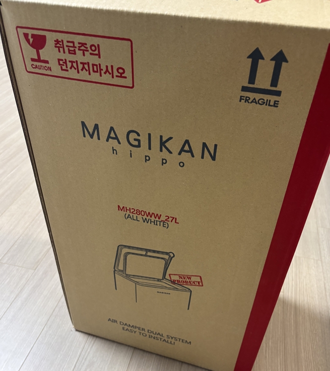 이중으로 포장되어있어서 내부에 매직캔 박스가 따로 있고, 겉 박스가 또 하나 더 있더라구요. 그만큼 꼼꼼하게 배송되어와서 파손없이 잘 도착했는데요.