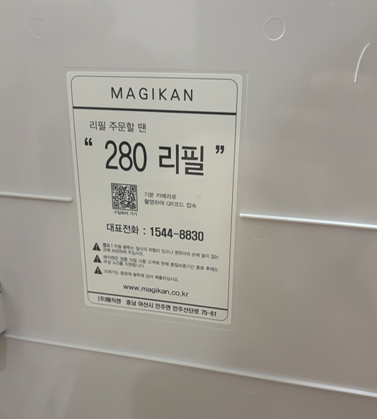 리필 매직롤을 구매할땐 헷갈리지말라고 안에 어떤걸 사야하는지 큐알코드랑 이름도 적혀있어요.