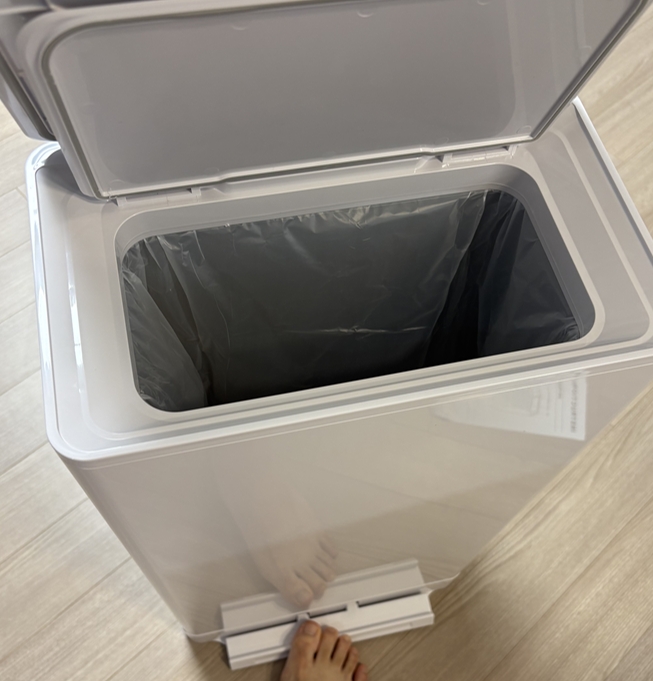 또 일반 휴지통과 달리 발 페달이나 버튼만으로 손을 쓰지 않고도 뚜껑을 열 수 있어, 기저귀를 갈고 바로 버리기에 위생적이고 편리하다고 알려져있어요.