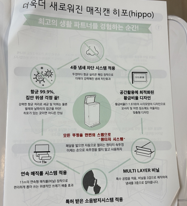 단순한 휴지통 대신 ‘냄새 차단, 위생, 편리함’을 모두 갖춘 매직캔 히포2 오토실링은 아주 유용한 선택이 될 수 있다해서 저도 특가가 떴을때 구매했는데요.😃