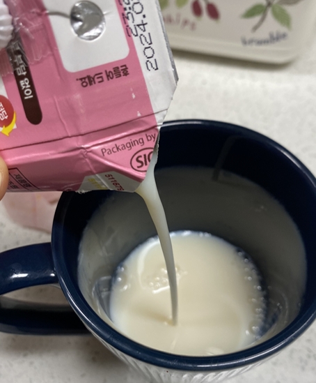아무래도 프로틴이다보니 먹기 전에는 세게 흔들어주시는게 좋은데요, 직접 한 번 부어보니 예상했던 빨간색이 아니라 막걸리 색갈을 띄고 있더라구요.