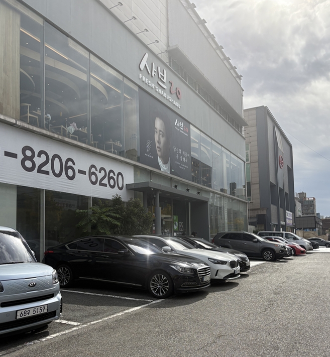 그렇다보니 주차장도 자체주차장이 구비되어있는데, 아래 사진에 보시듯이 샤브20 건물 바로 앞에 지상 주차장을 운영하고 있습니다.