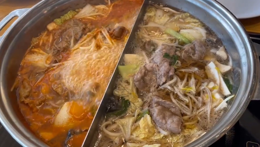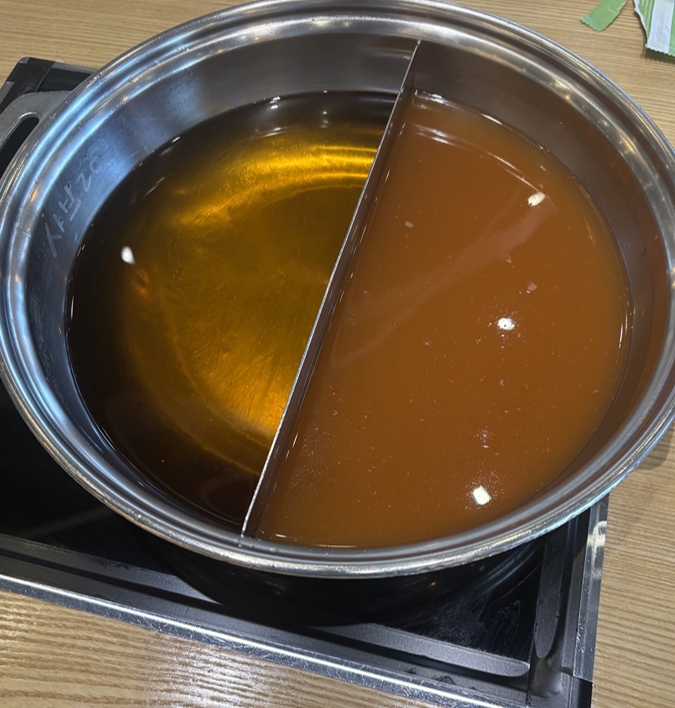 육수는 얼큰과 콩, 가쓰오부시, 스키야키, 훠궈로 나눠져있어요.