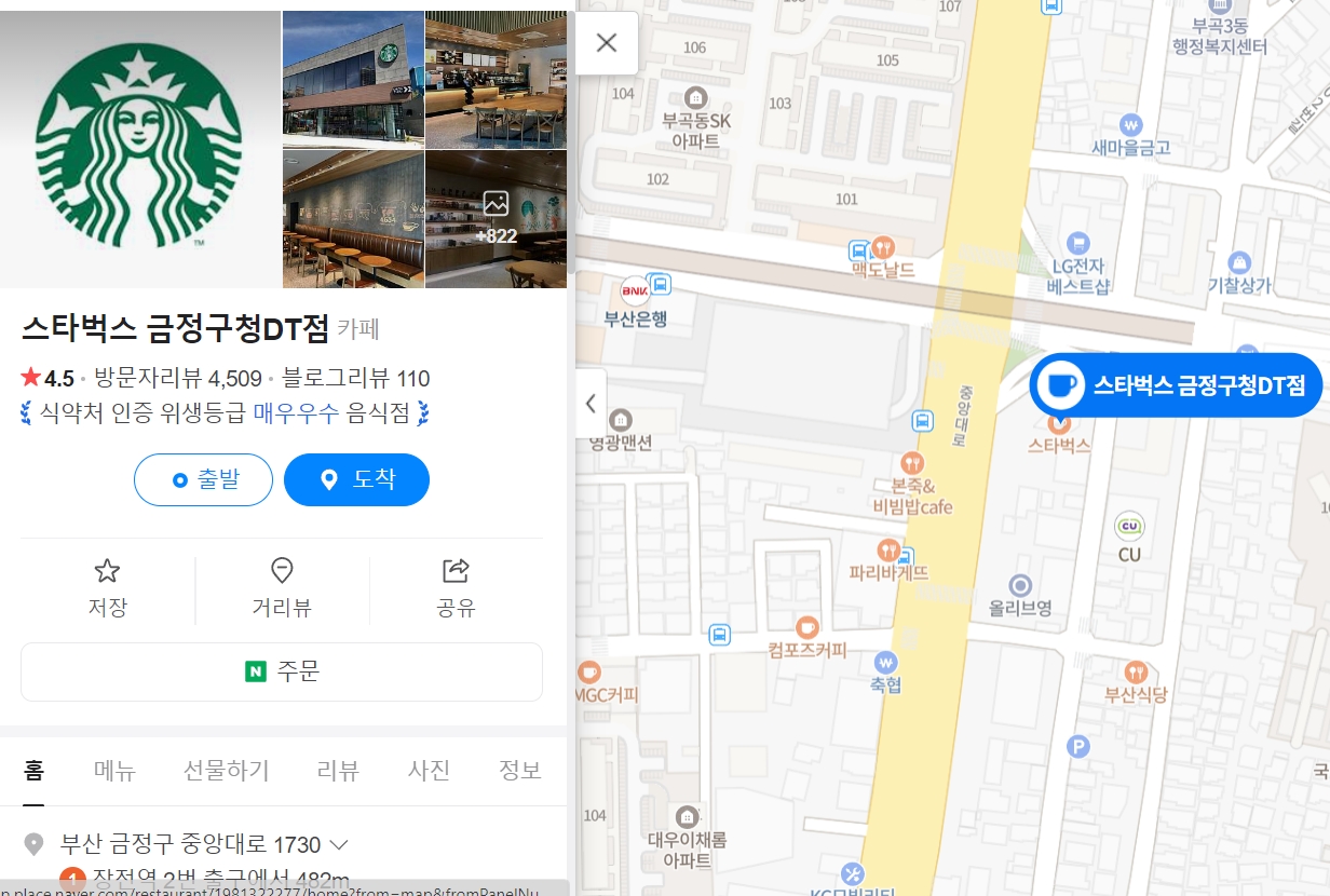 스타벅스 금정구청DT점은 지리적으로도 상당히 접근하기 좋은 곳이지만,