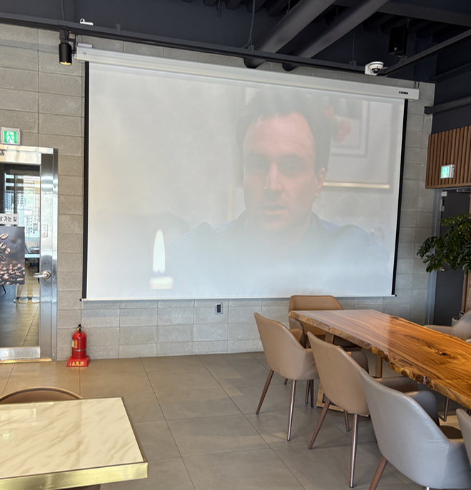 한쪽 벽면에는 심지어 프로젝트가 틀어져있어서 영화가 나오는데 옛날 영화 감성을 틀어놓아서 분위기가 너무 좋더라구요.