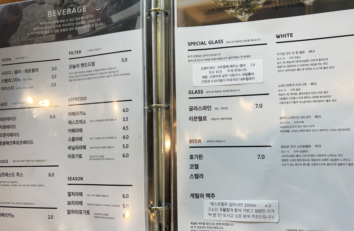 와인부터, 피자 그리고 샐러드, 리조또 파스타까지 다양한 메뉴가 있는 곳 (+메뉴판 가격사진)
