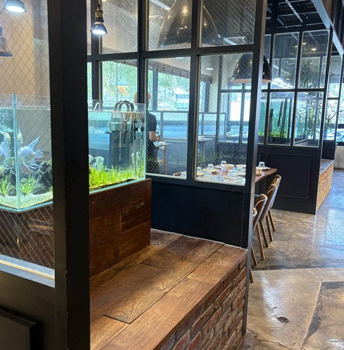 무엇보다 관상어들도 중간중간 테이블 사이사이에 어항이 있는데 신기한 어종들이 많더라구요.