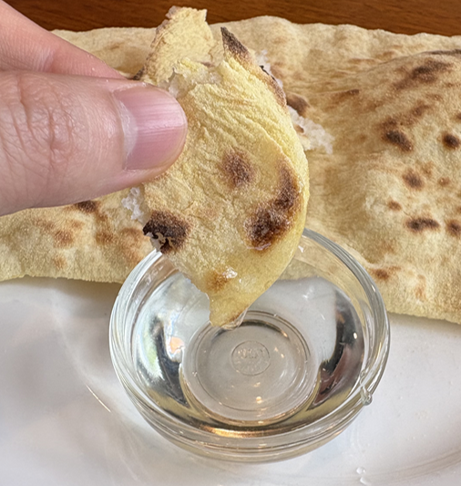 가장 처음으로 빵이 나왔어요. 2천원 치고 화덕에서 직접 구운 빵이라 그런지 엄청 따끈하면서 쫄깃하고 고소했는데요.