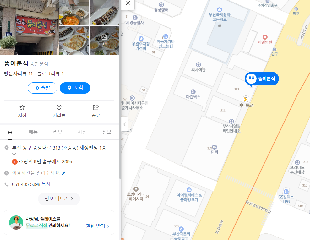 위치 : 부산 동구 중앙대로 313 (초량동) 세정빌딩 1층