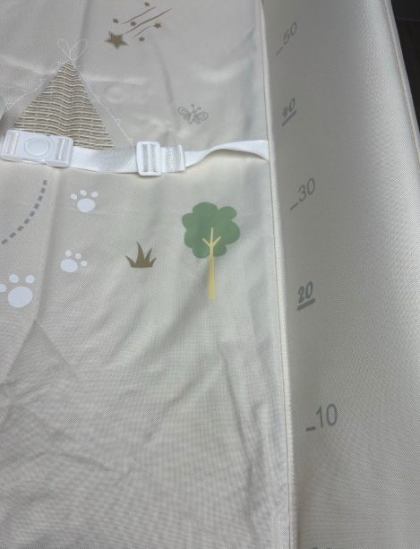 안전벨트를 통해 뒤집기를 하는 아이들의 안전을 도모할수있고, 갈이대에는 키를 잴수있는 숫자도 보이죠.