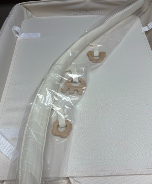 그냥 옆에 간단하게 밀어넣으면 우드모빌 설치가 끝나구요. 이것마저도 감성이 있고, 아이들 기저귀 갈이를 할 때 정말 효과적으로 할 수 있겠다 싶은 생각도 드는 구성품이었어요. 😊