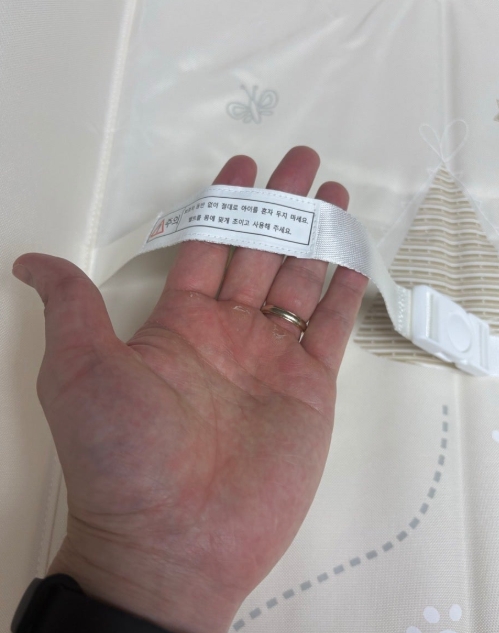 가장 중요한건 안전일텐데요. 맨살이 닿다보니 KC 안전인증은 당연한것이고, 상판이 펼쳐지고 튼튼히 고정되는 고정장치부터 또 아래 사진처럼 안전벨트까지 설계되어 있습니다.