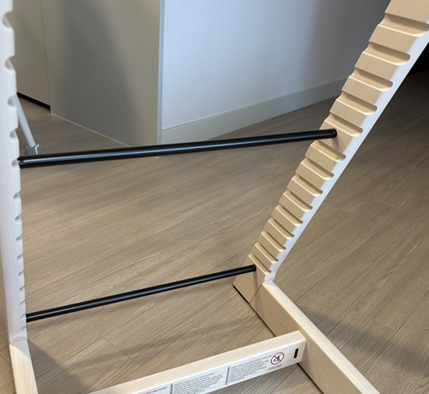 등받이는 그냥 홈에 맞춰서 넣은 후 그대로 조여주면되는 부품이라 간단했고, 엉덩이와 발받침의 네모난 선반은 아이에 따라 적당히 조절해서 설치하시면 되는데요.