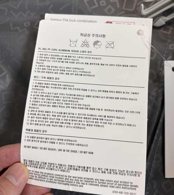 본 제품의 보증기간은 3년이라는 엄청난 기간을 자랑합니다. 또 열어보면 안에 TSA 락 설정방법 등의 설명서도 함께 동봉되어 있었는데요. 😃