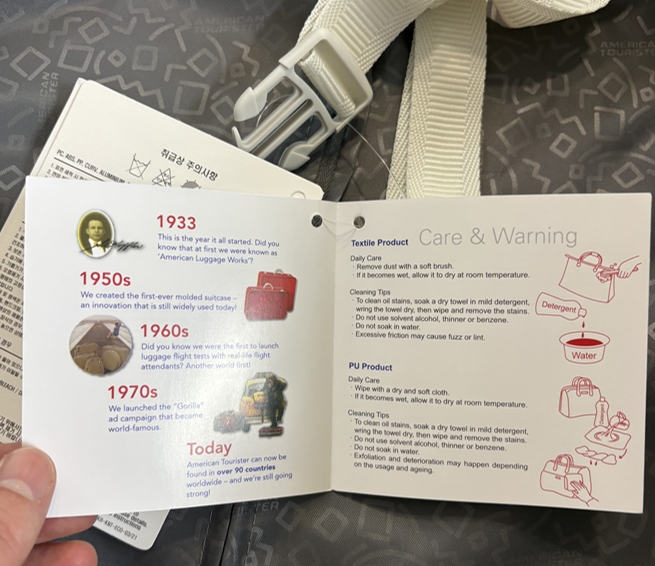 안에 택을보면 샘소나이트 글귀가 있는데 알고보니 아메리칸 투어리스터는 샘소나이트지만 패밀리 브랜드로 샘소나이트가 모회사고 아메리칸 투어리스터가 자회사 브랜드라고 합니다.