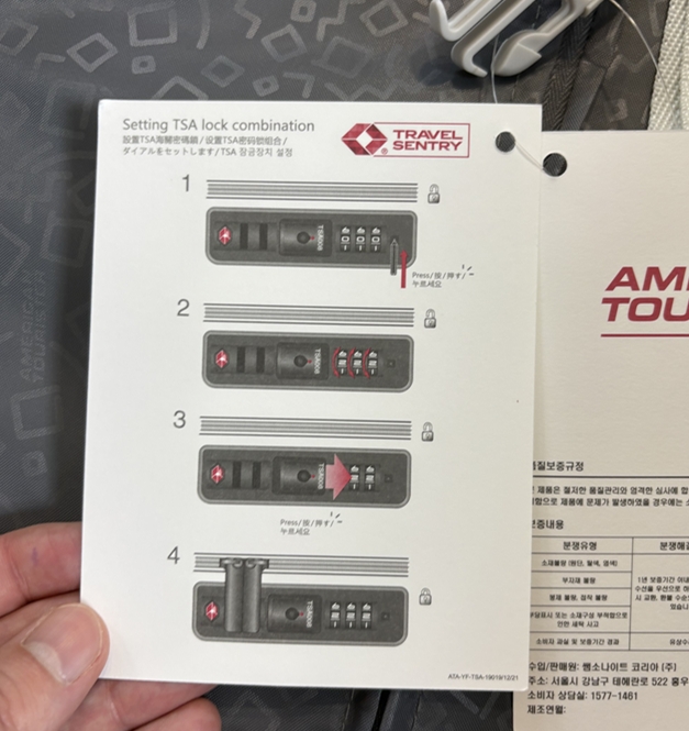 본 제품의 보증기간은 3년이라는 엄청난 기간을 자랑합니다. 또 열어보면 안에 TSA 락 설정방법 등의 설명서도 함께 동봉되어 있었는데요. 😃