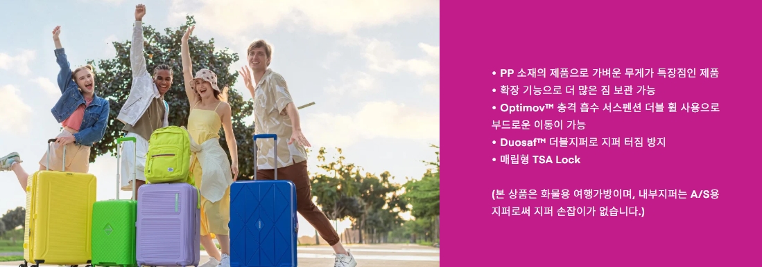 아메리칸 투어리스터 스콰셈(ScatterSAM) 제품은 여행에 필요한 실용성과 스타일을 모두 갖춘 캐리어 라인으로, 가볍고 견고한 소재를 사용해 이동 시 부담을 줄여주는 것이 특징인데요. 😃