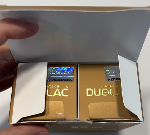 고급스러운 포장, 안전한 균주로만 배합된 듀오락 골드캡슐 (+외관사진)