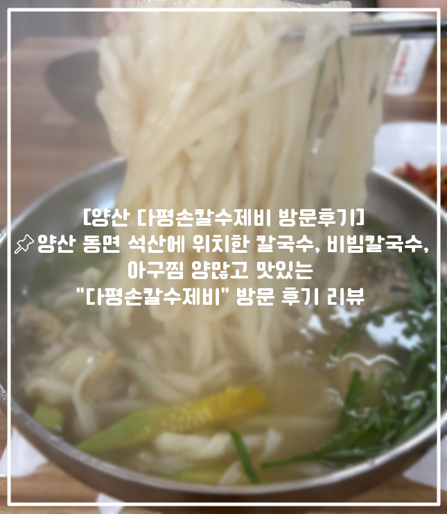 [양산 다평손칼수제비 방문후기]📌양산 동면 석산에 위치한 칼국수, 비빔칼국수, 아구찜 양많고 맛있는 “다평손칼수제비” 방문 후기 리뷰 (+다평손칼수제비 주차장, 양산 다평손칼수제비, 석산 다평손칼수제비, 석산 칼국수 맛집, 석산 아구찜 맛집 추천, 동면 칼국수 맛집 추천, 양산 다평손칼국수, 양산 다평칼국수, 양산 다평손칼수제비)
