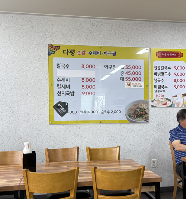 여기는 말씀드렸다시피 칼국수와, 아구찜이 메인입니다.
