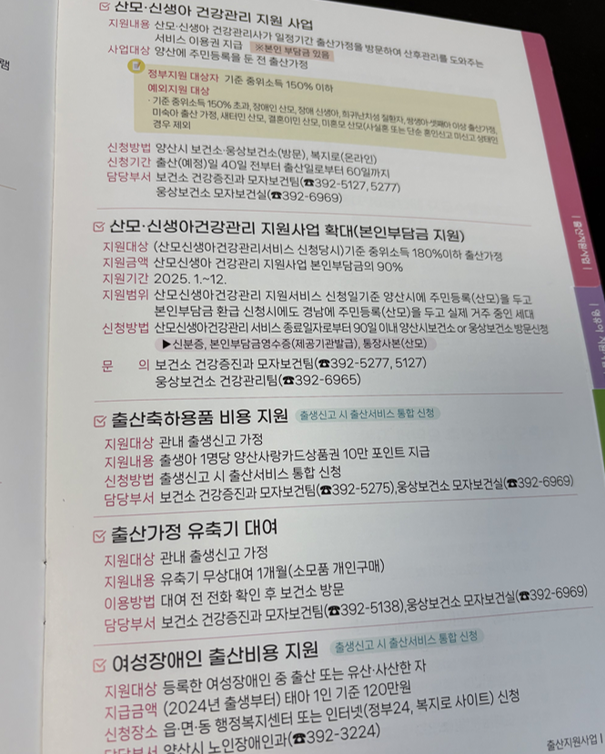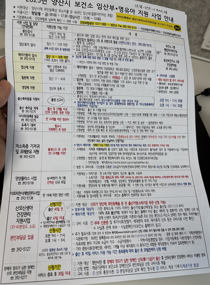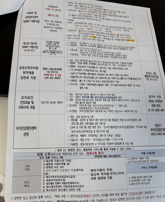 축하선물 외에도 다양한 산전후 지원사업에 대해 파악가능한 양산보건소 (+사진)