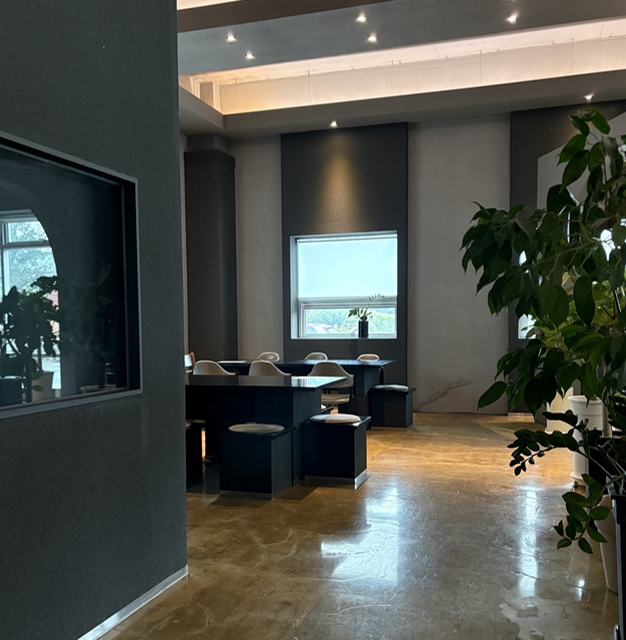 전체적으로 어두운 블랙 분위기가 인상적인데 그럼에도 조명이 따뜻한 색으로 배치되어있고 다양한 식물도 배치되어 있어서 ㅏㄸ뜻한 느낌이 인상적이었어요.