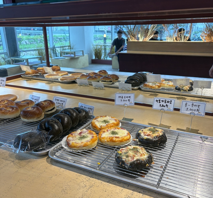 개인적으로 여기 빵이 종류가 많고 인상적인편이었는데, 약 3~4천원대로 빵 가격이 괜찮은편이면서 치아바타, 브리오슈, 제가 가장좋아하는 피자빵, 베이글, 크림치즈빵 등이 진열되어 있어요. 상당히 수준급입니다.