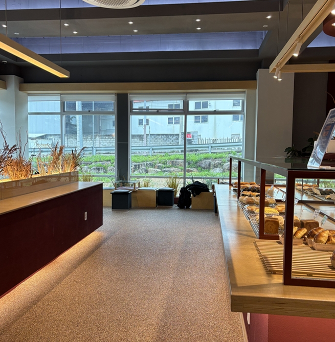 취식공간은 1층밖에 없는데 매대가 있는 쪽에는 창가쪽에 몇자리가 있어요. 가족단위로 오셔서 앉을만한 공간도 있습니다.