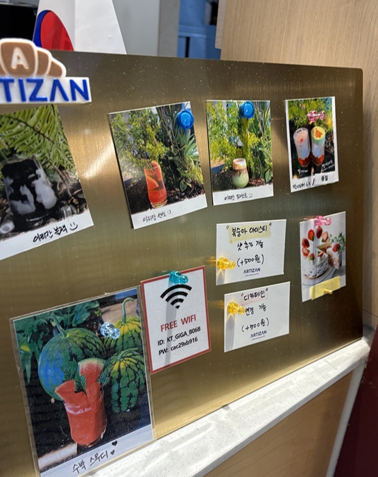베이커리만해도 다양한데 음료가 굉장히 신기했어요. 각종 아이스티부터, 다양한 처음들어보는 음료 사진들이 있더라구요.