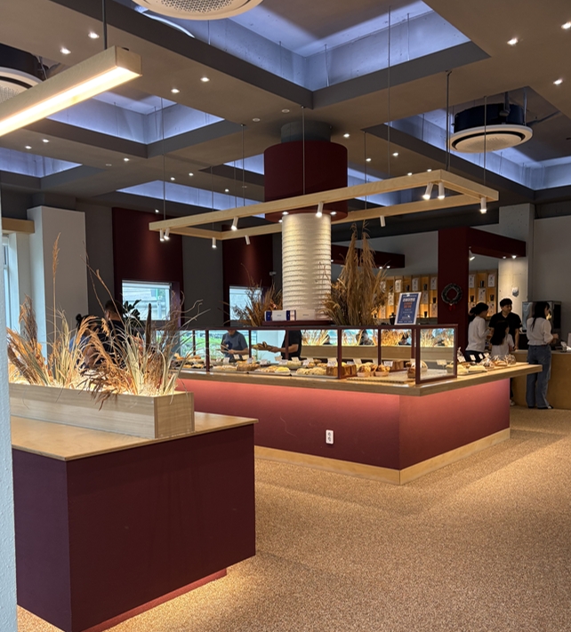 들어가자마자 반기는건 베이커리 빵 향기가 향긋하게 풍겨오고, 통창유리와 아랫 조명이 따뜻한 분위기를 연출해서 좋았습니다.