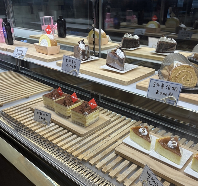 소금빵과 잼, 생크림을 포장으로 파는건 세트로 12,000원으로 판매하기도하고 케이크류로 도지마롤, 브라우니, 티라미스, 치즈케이크 등 가격도 타카페에 비해서 합리적이게 판매중이더라구요. 😊