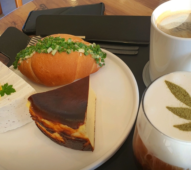 그중에서 먹음직스러워 보이는 바스크 치즈케이크를 고르고, 진열된 직접 구우신다는 베이커리도 몇개 골랐는데 결론부터 말하자면 자극적이지 않고 정말 맛있는 빵이었어요 😊
