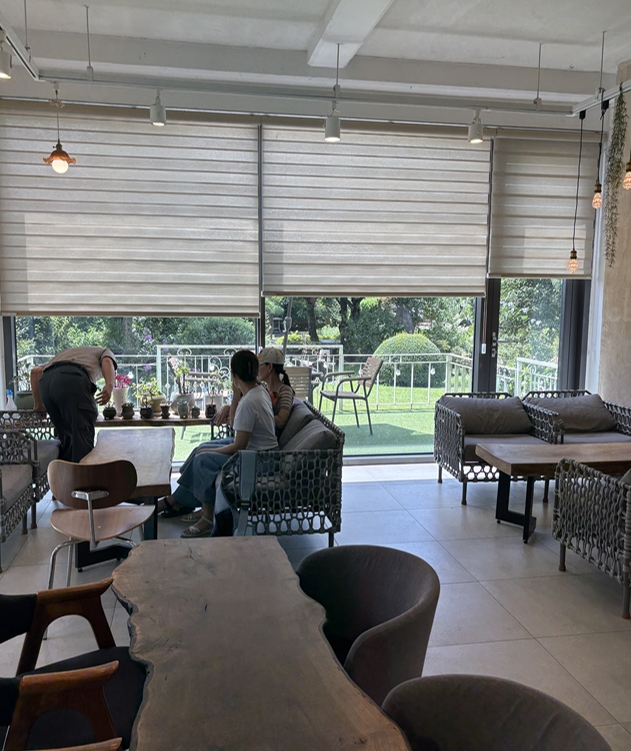 대체적으로 평가하자면 바깥 정원공간을 바라보면서 분위기좋게 커피한잔을 즐길수도 있고, 시원하게 내부에서 즐길수도 있어요 😊