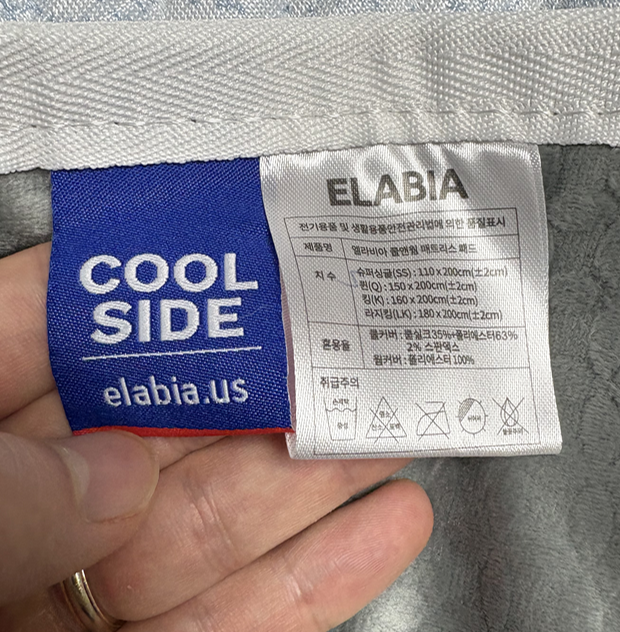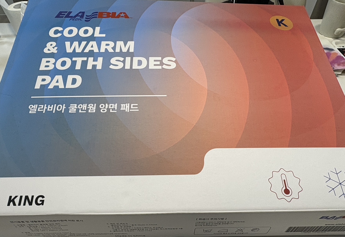 사실 기존 냉감패드가 있었는데 모두 품절이고, 당시 재고로 몇개 남아있던 것은 엘라비아 쿨앤웜 패드라고해서 겨울에는 따뜻한 재질의 면으로 사용이 가능하고, 여름에는 냉감패드 면으로 사용이 가능하다고 하더라구요.