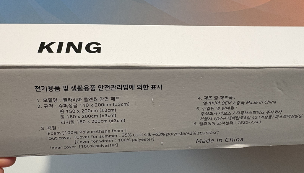현장에서 받은 박스자체도 컸는데 슈퍼싱글부터 라지킹까지 사이즈가 있었고 아쉽지만 메이딘 차이나라고 적혀있네요. 😁