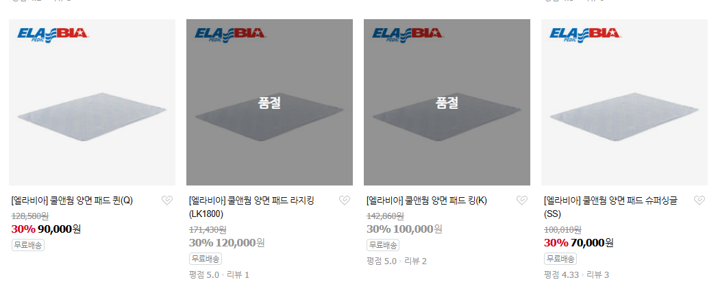 킹사이즈 기준 10만원에 구매가능한 인기폭팔 엘라비아 냉감패드 (+가격정보)