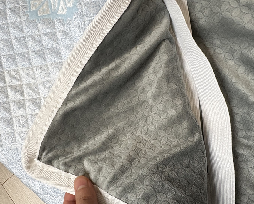 보시다시피 매트리스에 고정할 수 있는 고무밴딩이 처리되어있고 박음질도 이중으로해서 꼼꼼하게 잘 되어있습니다.