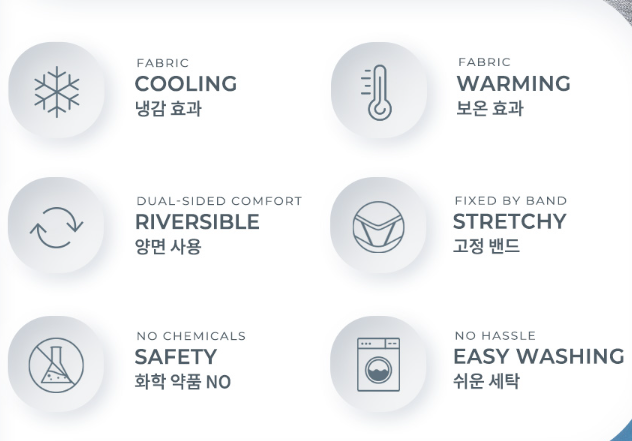 무엇보다 요 제품 경우에는 양면 사용가능인지라 사계절 내내 사요가능하고, 매트리스에 고정되는 밴드가 있으며, 무엇보다 아이들도 사용가능한 화학염품 처리가 안되어있다는 점입니다