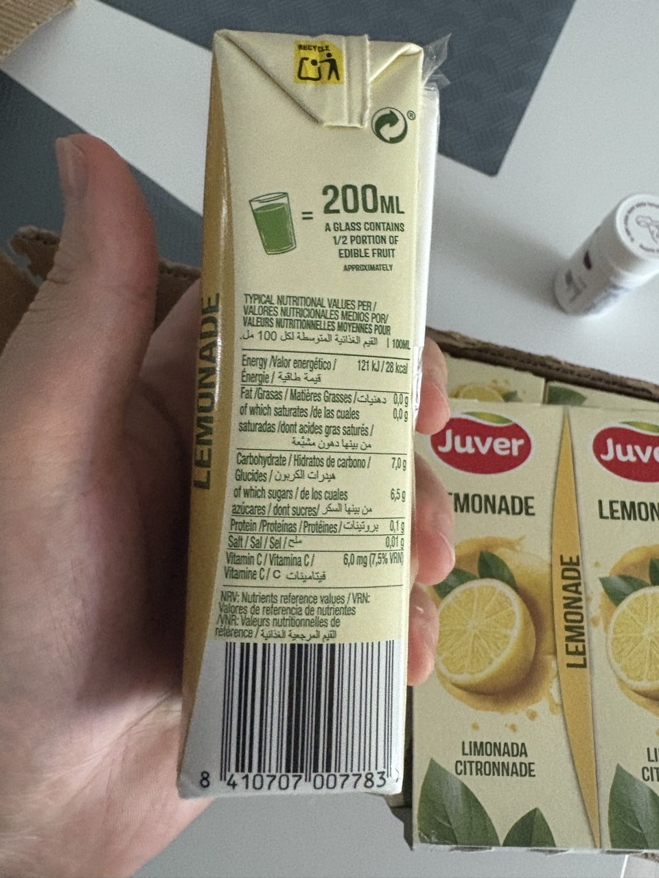 한팩에 200ml다보니 먹고싶을때 딱 한잔으로 용량도 괜찮은 편입니다. 누가봐도 레몬에이드구나 싶은 포장이죠 😊