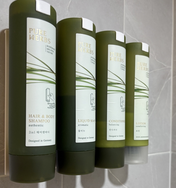 따로 룸서비스가 있지는 않고, 비데가 설치되어 있고 물비누같은 것들도 리필되어 있는데 브랜드는 퓨어허브라는 브랜드네요.