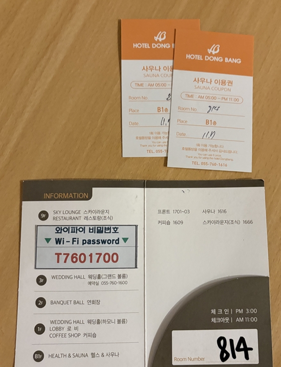 사우나와 피트니스 이용권 2장까지 무료로 배부해주는 동방호텔 (+사진)