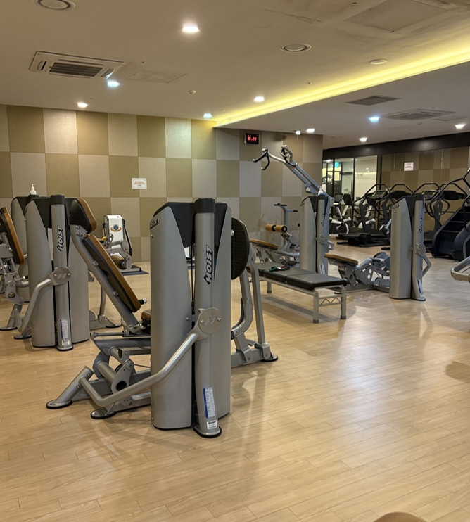 지하 1층에서 사용가능하며, 사우나 목욕탕 말고도 헬스장도 무료로 이용가능한데 무려 옷까지 제공해주니 참고하시는게 좋겠습니다. 여기는 객실보다 지하1층 헬스사우나가 넘사벽입니다.