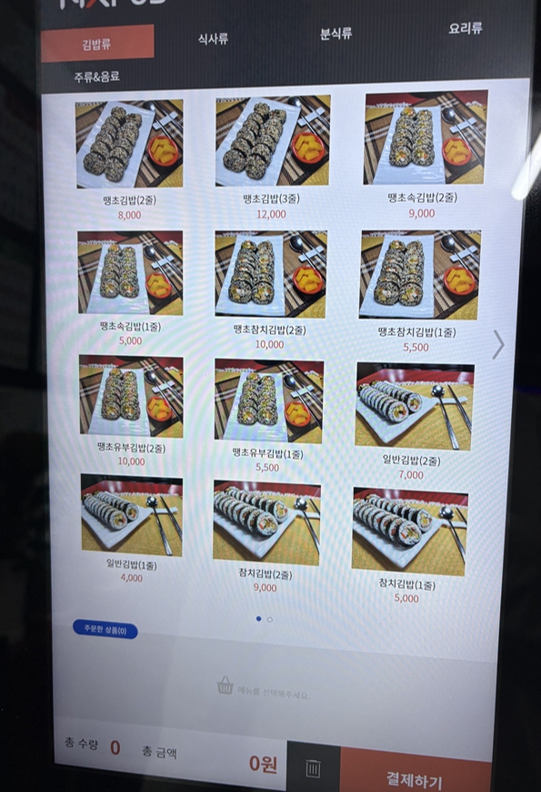 키오스크가 안에있어서 키오스크로 카드결제하시면 되구요. 이때까지만해도 매워봐야 얼마나 맵겠냐 그냥 일반 땡초 조금 넣고 떙초김밥이라 하겠지라고 생각했던게 오산이었습니다 😁