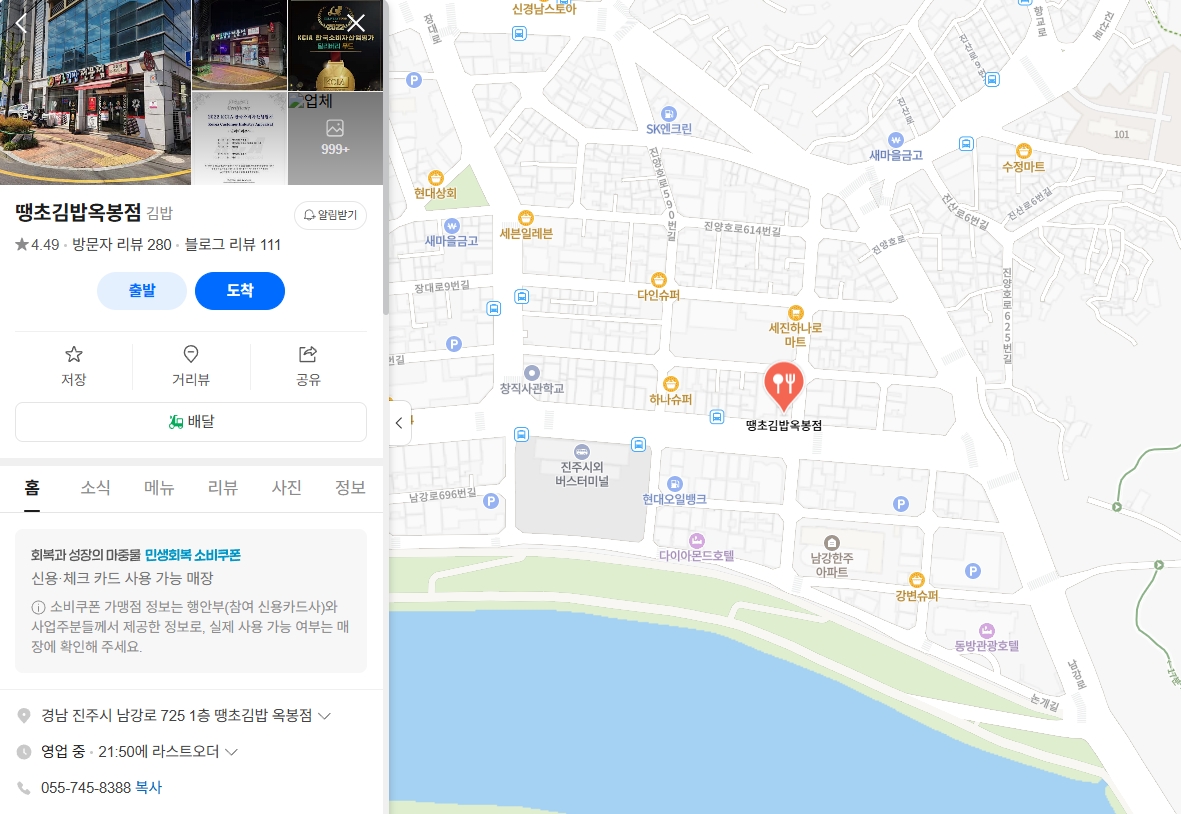 진주시외버스터미널 옥봉동에 위치한 땡초김밥 옥봉점 (+위치와 영업시간)