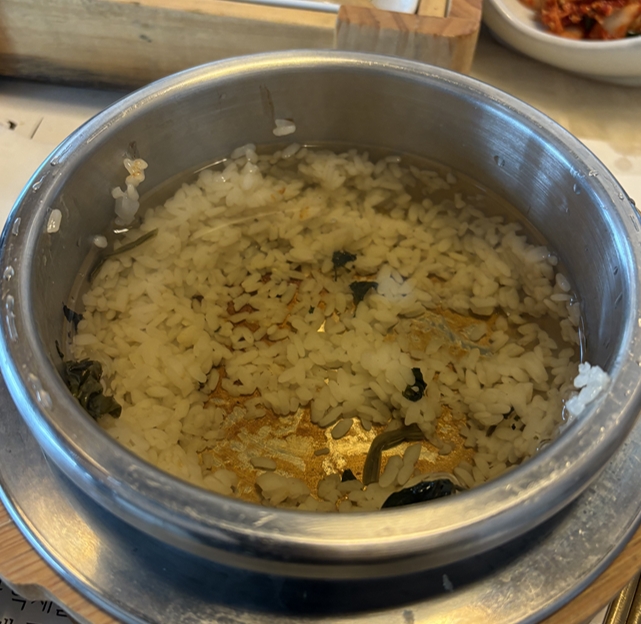 그렇게 누룽지까지 마무리를 했는데 고소하고 맛있었고 심지어 마지막 디저트로 얼음이 들어간 매실주스까지 내어주셨는데 한끼로 완벽했습니다 😁